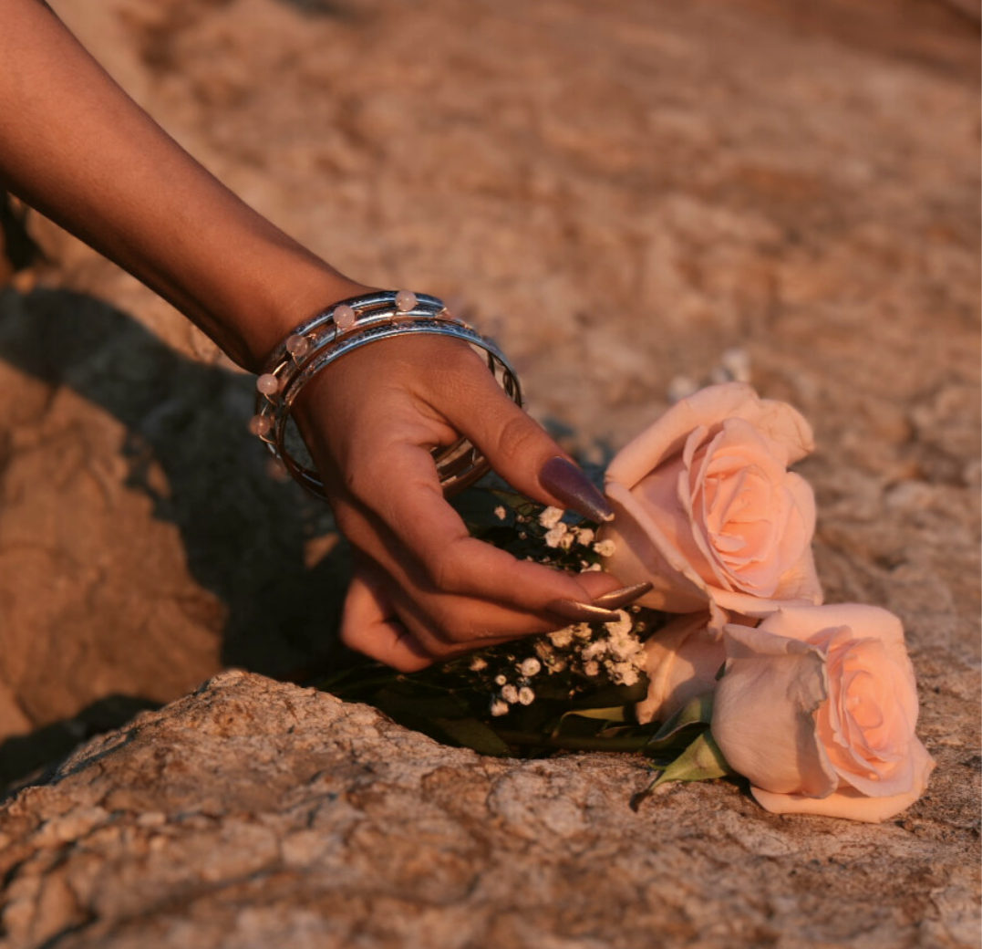 The Maniobra Bangles are crafted with the intention to adorn our arms in recognition of their sacred nature & to strengthen our intentions with them.